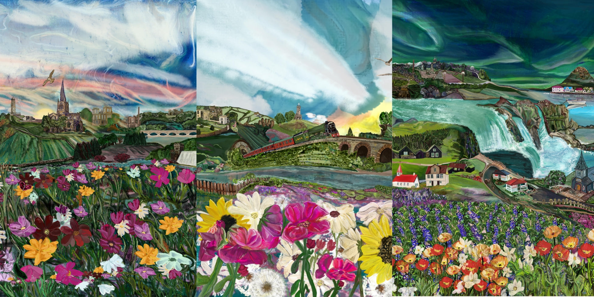 Heading up north along the railways, the Flying Scotsman journeys through the landscapes, flashes of colour surround her as she steams ahead over bridges, through tunnels. Surrounded by nostalgia, passing by the tales of our passed, historic monuments creating shadows on the horizon.
